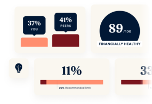 Discover your financial health score, debt to income ratio, get a snapshot of your credit utilization, and see how you stack up to your peers.